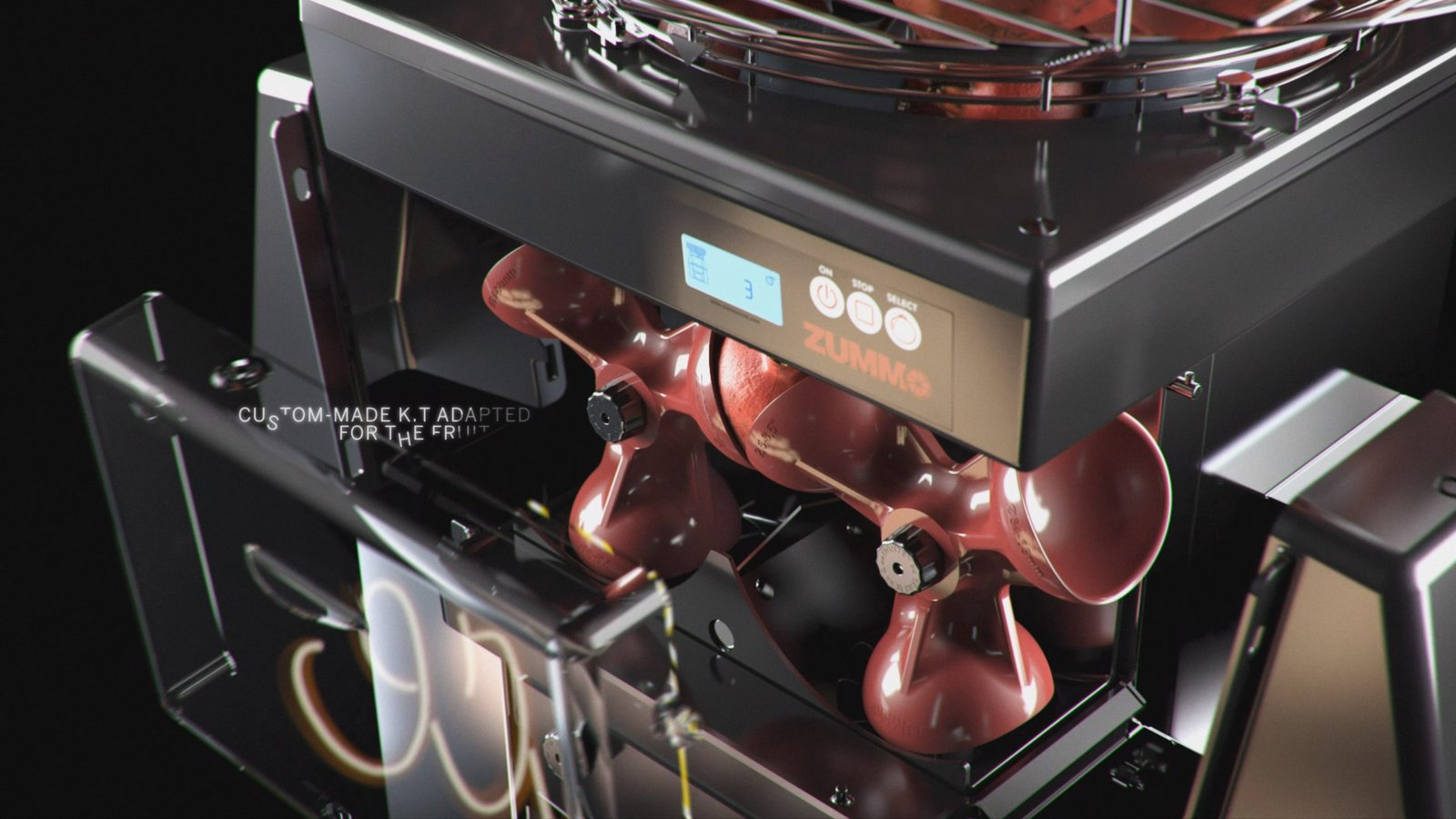 Zummo commissioned a video for a multi-fruit juicer with interchangeable parts. The film was created fully in 3D with "zero gravity" and "attraction" as core theme.